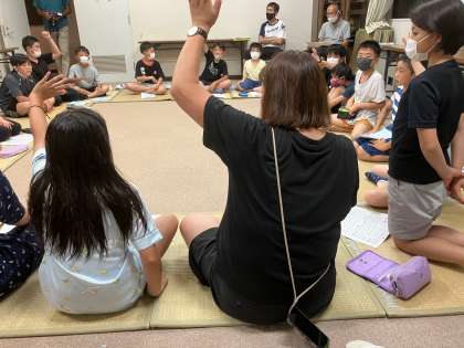 盛りだくさんの活動内容があった一日の終わりですが、子どもたちはまだまだ元気です。体調を崩す子どもはいません。