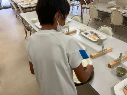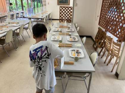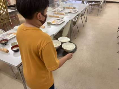 今朝も、昨晩と同じく食事係の子どもたちがテキパキと配膳をしています。