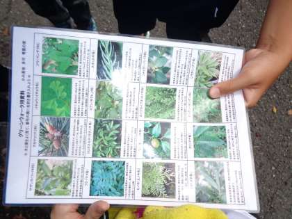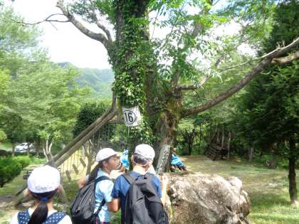おいしい朝ごはんの後は、野外での活動「グリーンウォーク」です。敷地内の樹木をウォークし、樹木名を当てていきます!