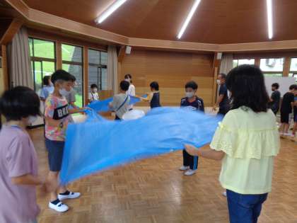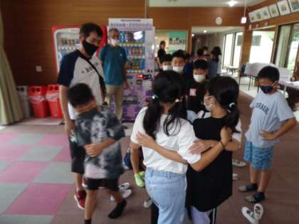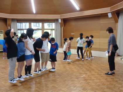 雨天のため、イニシアティブゲームは、宿舎内で行いました。チームワークが成功の秘訣です。