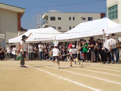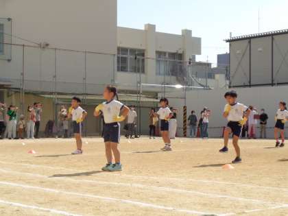 低学年の出番となりました!集団演技を披露し、徒競走です!