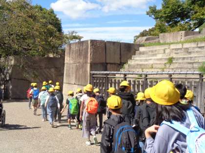 ピースおおさかの見学の後は、城内を移動し、お楽しみの弁当タイムです!