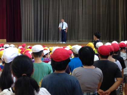 台風接近のため、明日が休校になる可能性があるため、本日1学期の終業式を行いました。2学期の始業式にみんな元気に登校できるように、夏休みを過ごしてほしいです。