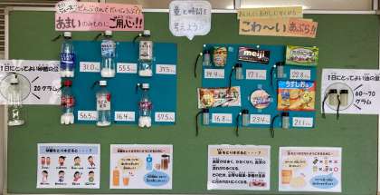 普段よく食べている・飲んでいるおやつはこの中にあるでしょうか?たくさんの砂糖や油が含まれていますね。学校では、掲示を見た児童から驚きの声が上がっていました。11月8日は「いい歯の日」。歯を含めたからだ全体の健康のために、おやつの取り方や量について、お子さんと話し合ってみてください。