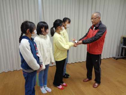 今朝の全校朝会時に、キックベースボールチームの入賞トロフィーの伝達と各学年が体育の授業で行った長距離走の記録賞の表彰を行いました。