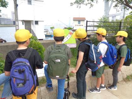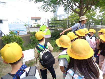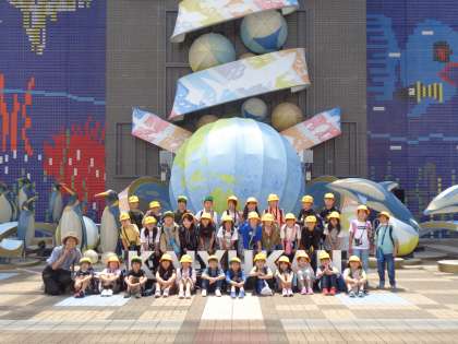 記念写真の後は、海遊館横の日本一低い山「天保山」に全員登頂を果たしました!(万歳!)