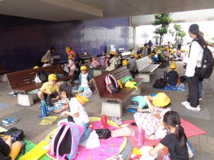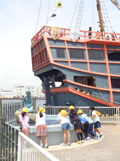 弁当タイムの後は、岸壁に出て、観光船「サンタマリア号」を発見!岸壁を吹き抜ける風が心地よかったです。