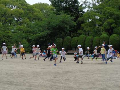 お弁当の後で、広場でゲームで遊び、その後学校に帰りました。楽しい一日でした。