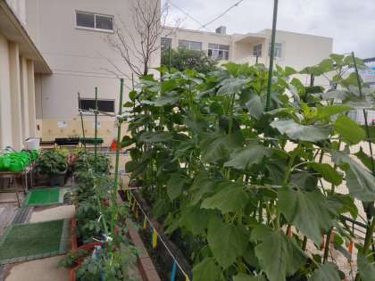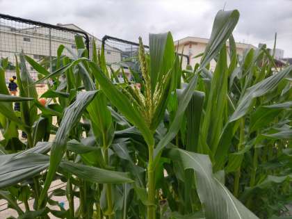 ひまわりもとうもろこしも、ぐんぐん育ってます。