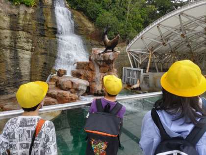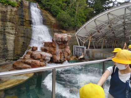 水しぶきがすごくて子ども達は少し下がってみてました。