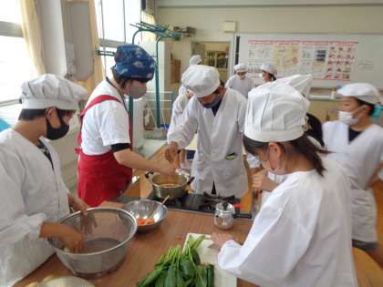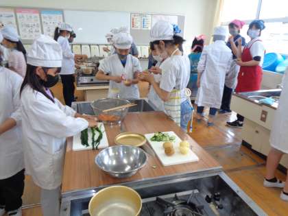 6月22日、23日に、5年生が初めての調理実習を体験しました。