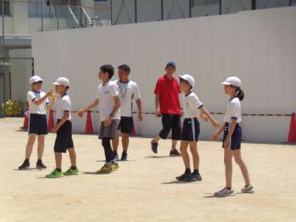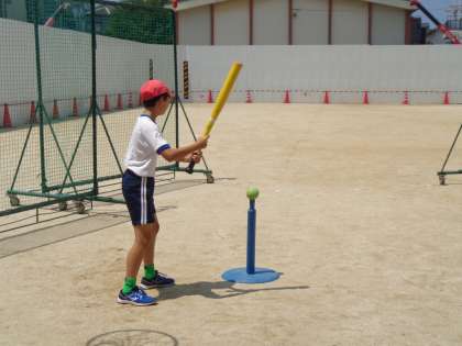 夏本番を感じさせる7月11日、ゲストティーチャーを迎えて、6年生が「ティーボール」の出前体験です!