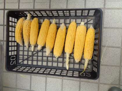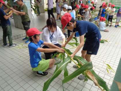 収穫したトウモロコシは、明日の給食時に「カットゆでトウモロコシ」にしていただきます!