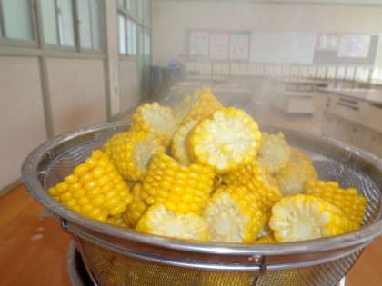 さて、3年生が昨日収穫した「トウモロコシ」を給食時にいただきました!