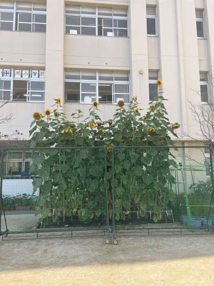 1年生が春から育てたひまわりが、4メートルを越えました!