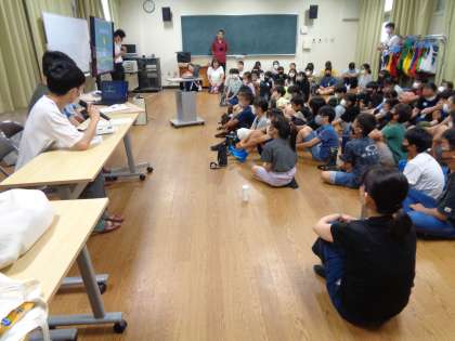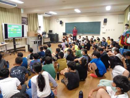 大阪府警本部、淀川警察署、大学生ボランティアにお越しいただき、安全教室に4〜6年生が参加しました。