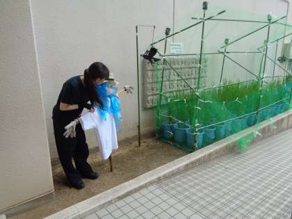 これは、現在、5年生が「バケツ稲」の栽培を行っていますが、稲作作りの一環で、案山子作りにも挑戦しました。