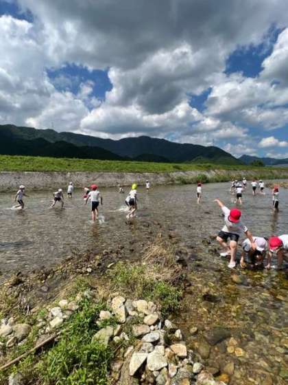 川で沢蟹を探したり、石切りをしたり、とても楽しそう!