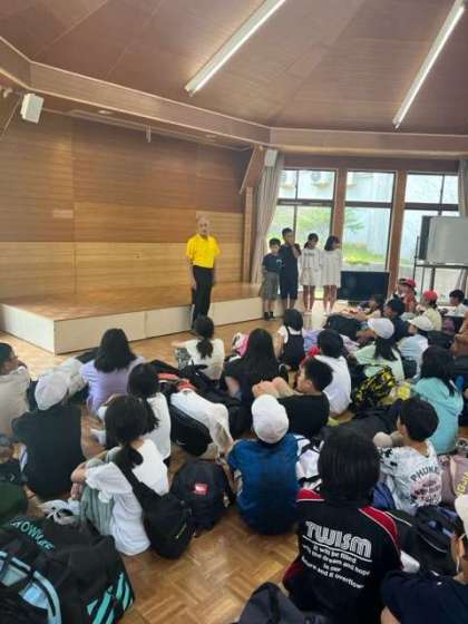 代表を務めた子どもたちが、お世話になった宿舎の方に感謝の気持ちを述べ、さようならをしました。