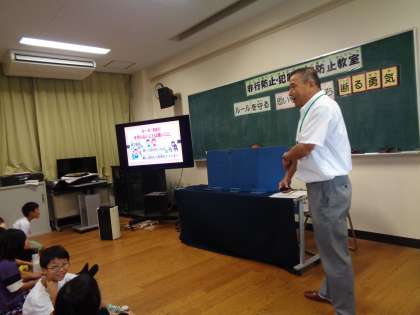 9月7日、5年生の非行防止教室です。専門家に来ていただき、事故や犯罪から身を守る方法や心がけについてレクチャーを受けました。