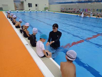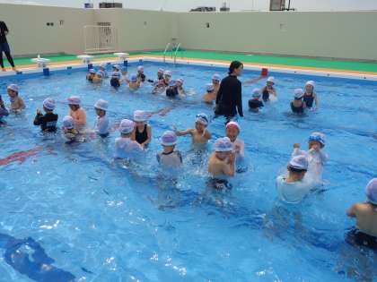 今日は、まず、プールでのお約束を一つ一つ確認しました。そして、水遊びを楽しみましたよ!