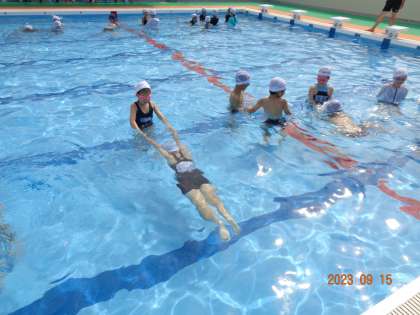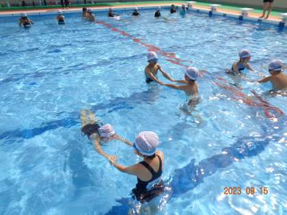 今週の9月13日から始まった「新プール」での水泳授業ですが、今日、2年生がプールに入り、これで、1〜6年生の全学年の1回目のプール学習が一回りしました。来週も水泳授業を実施します。