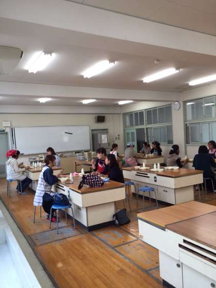 この日の献立は、ごはん、かつおのガーリック風味焼き、にゅうめん、はくさいの甘酢づけ。18名の保護者の皆様が参加されました。