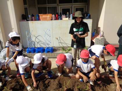 10月11日、秋晴れの晴天の下、2年生がイモ堀です。