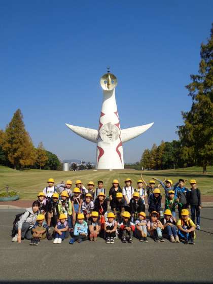 万博公園「太陽の塔」の前で・・・・3年生集合です!