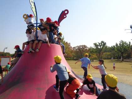 弁当タイムの後は、芝生広場で遊び、遊具を楽しみました。