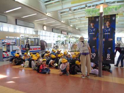 上:万博公園駅に到着です。たくさんの小学生や中学生も来ていました。