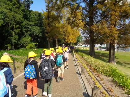 11月2日、3連休前の絶好の晴天日、3年生が「万博公園」へ遠足です。阪急京都線で南茨木駅へ、そこから大阪モノレールで万博公園に到着です。