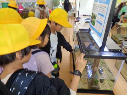 下:スタンプラリーの最初は、園内の「自然観察学習館」からです。