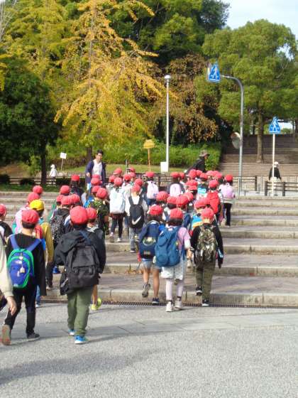 11月9日、快晴の天気です。2年生が「服部緑地」へ遠足です。