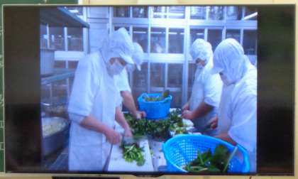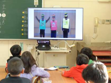 給食委員会が作成した動画も視聴しました。内容は、栄養レンジャーが登場し、学校給食の歴史や田川小学校の調理員さんが給食を作っている様子を紹介しました。