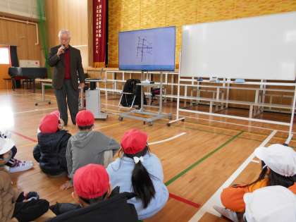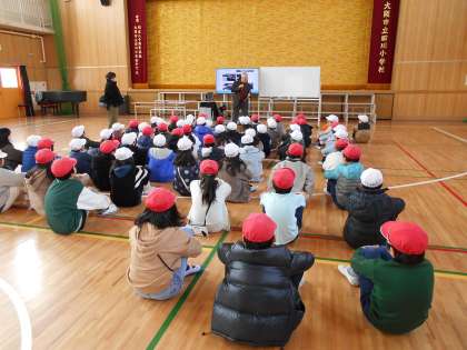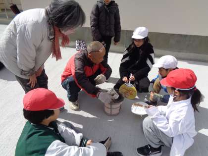 こちらは3年生、社会科の学習で「むかしの暮らし」を学びます。地域の皆様をゲストティーチャーに招き、田川の昔の様子を学びました。後半は「七輪」の体験です。