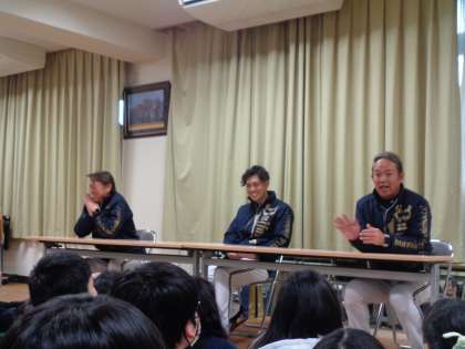 残念ながら今日は雨でしたので、多目的室で講話を聞かせていただきました!プロ野球選手になられた経験を通して、子どもたちに伝えたいこと、大切にしてほしいことなどをお話しくださいました。