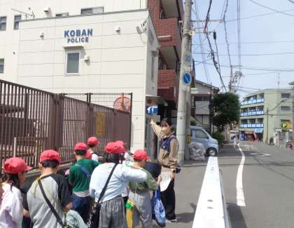 今日は、3年生が、社会科「わたしたちのまちのようす」の学習で、校区たんけんに出かけました。校区の地図と照らし合わせながら、郵便局や交番など、校区にあるものを調べました。また、タブレットでまちの様子を記録しました。