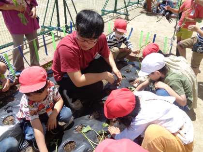 「どちらの方を土に植えるの?」「これからサツマイモができるの?」と不思議そうにしていました。