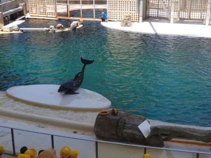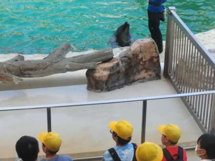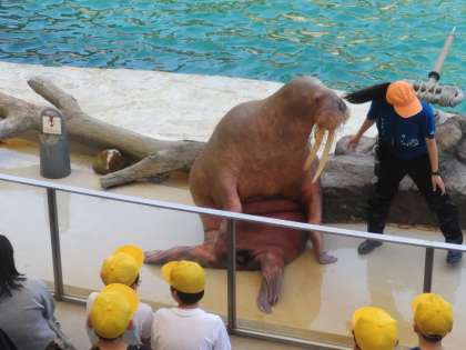イルカのショーを見るとたくさん拍手をしていました。セイウチは、とても大きくて驚いていました。
