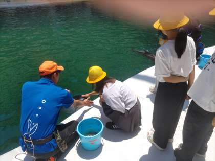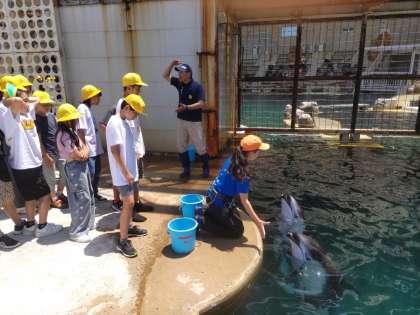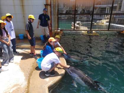 イルカとふれる体験をしました。イルカを触る時は、緊張していました。