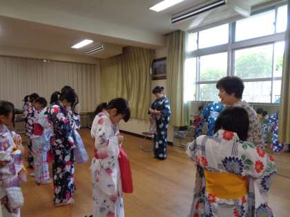 今年度も地域の方のご厚意により、5・6年生を対象に、ゆかたの着付けを体験させていただきました。