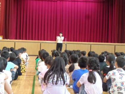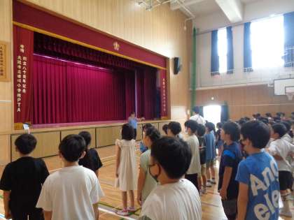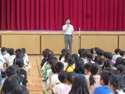 校長先生からは、「通知表をおうちの人に見せながら、頑張ったことなどお話ししてくださいね。」「長い夏休み、色々なことにチャレンジしてみましょう!」などお話がありました。