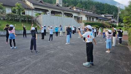 昨日は色々な活動をしたので布団に入ったらすぐに寝ていました。2日目の朝もみんなそろって朝の集いをして、元気な1日をスタートしました!