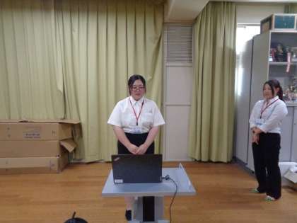 その後、本日から教育実習に来られた二人の先生の紹介がありましたよ!