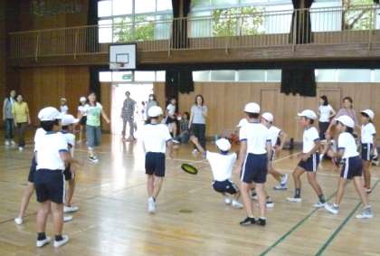 PTA学年委員さんの企画により、親子でドッチビーを楽しみました。体力差に関係なく誰もができるのがいいですね。