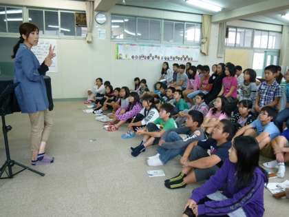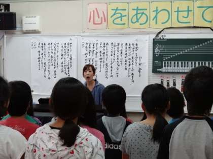 新北野中学校の音楽の先生が、6年生の音楽の時間に合唱指導をしてくださいました。