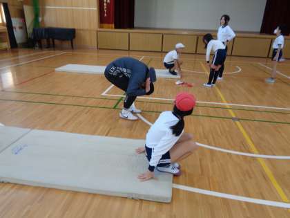 本日は、5年生はマット運動、6年生はラグビーのスポーツ出前授業を受けました。マット運動では、プロの先生に来ていただき、開脚前転や開脚後転の仕方を丁寧に教えてもらいました。ラグビーでは、プロの選手に来ていただき、パスやキャッチの仕方について楽しく教えてもらいました。