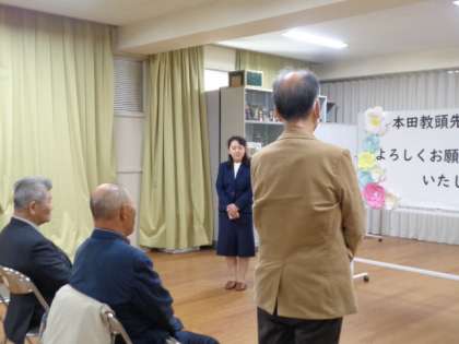 地域の方々にお集まりいただき、本田教頭先生の着任式が行われました。