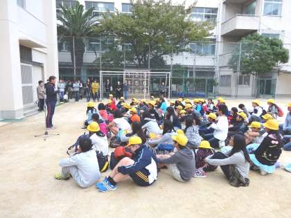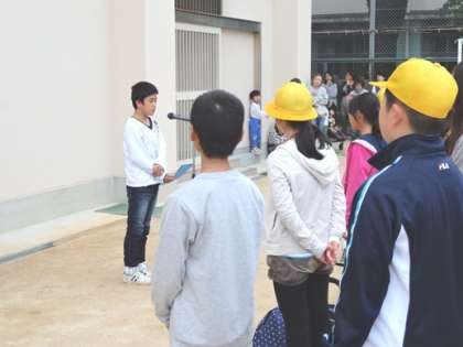 校長先生に続いて、児童の代表が、自然体験学習の報告をしました。付き添いの看護師さん・ボランティアの学生さんにお礼を言いました。行事の変更はありましたが、勾玉づくり以外はすべてできましたし、今年も鳥居までカッターで行くこともできました。課題の部分は残り半年の学校生活で克服していってほしいと思います。